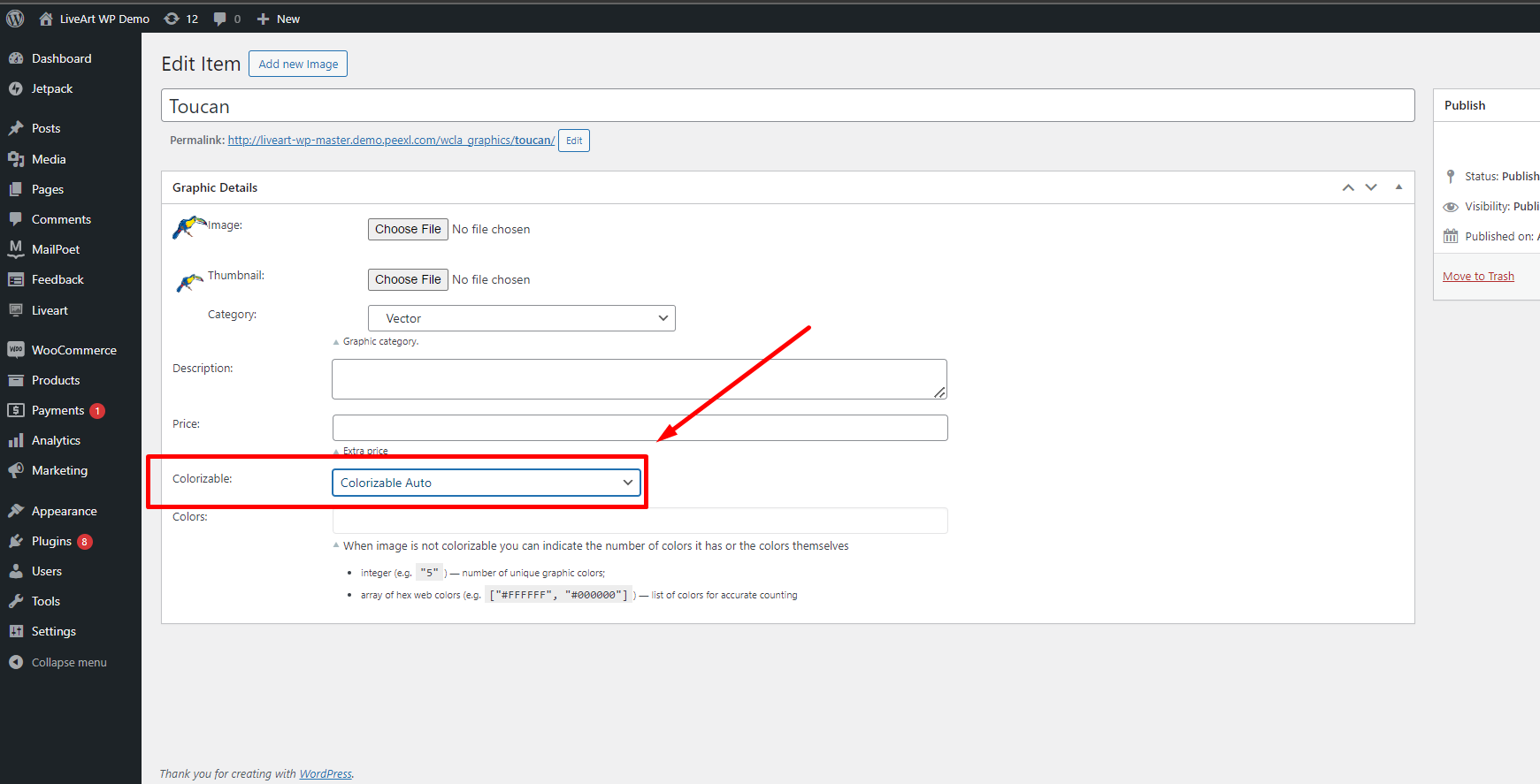 You can enable automatic parsing of your uploaded SVG graphics to colorizable layers in LiveArt Control Panel. LiveArt will recognize colorizable layers for you and name respectively as Color 1, Color 2, etc. Please see examples: