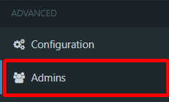 - Click on "Admins" in Advanced.