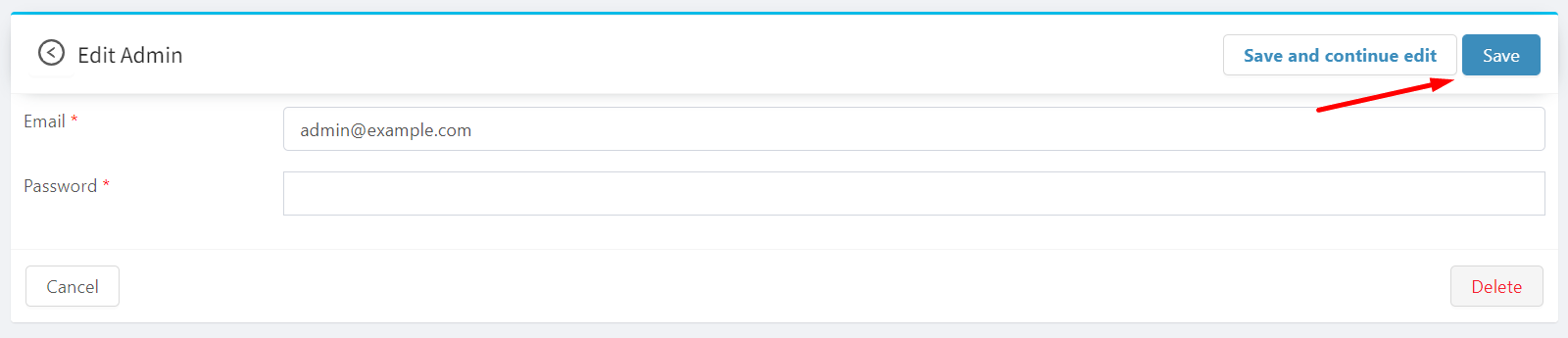 - Choose admin you want to edit from the list.