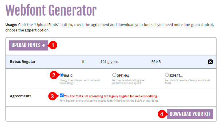 Press "Download Your Kit" to download the converted font.