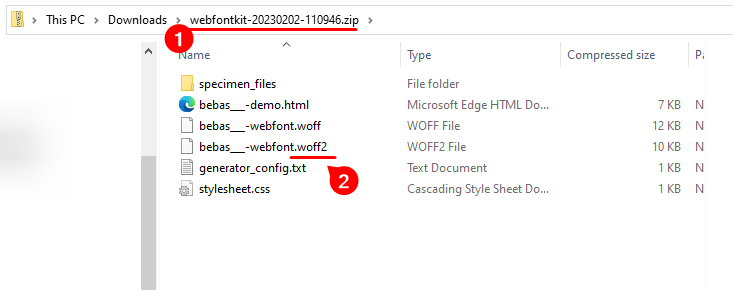 Inside the generated ZIP find the WOFF2 file. This file shall be used to upload it inside the LiveArt Control Panel (the last step). See an example below:
