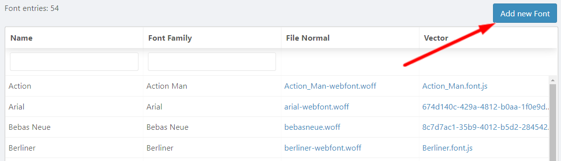 Setup process consist of converting your TTF or OTF font files to required format, generating preview, and setup them in the Admin Area.