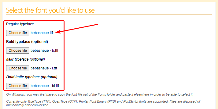 Upload the TTF or OTF regular typeface font file into the convertor.
