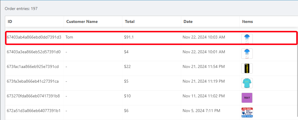 - Click on the order you need to see.