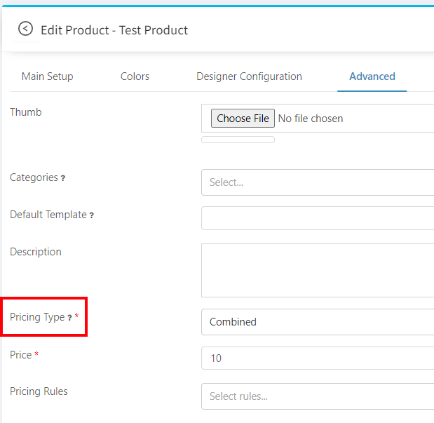 With this option you can enter the price and use the Pricing Rules within LiveArt.
