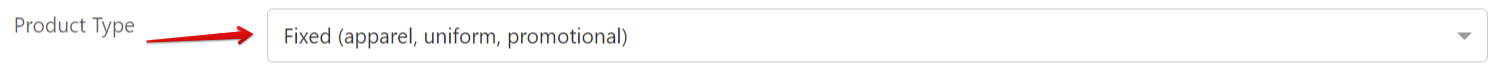 Choose Product Type - Fixed. This option is intended for products such as uniforms, apparel, and promotional that have fixed product dimensions that customers cannot change during the design process.
